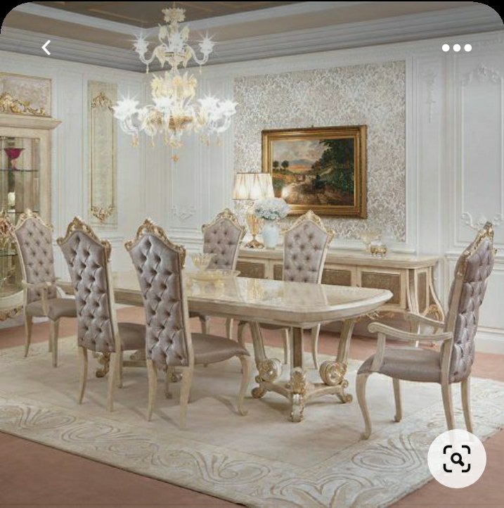 Step into timeless elegance with the Regal Heritage Dining Set, a tribute to the opulence of classic European interiors. Featuring lavishly carved frames, button-tufted velvet high-back chairs, and a glossy cream-toned tabletop supported by ornate pedestal legs, this 8-seater masterpiece transforms any dining space into a royal banquet hall.